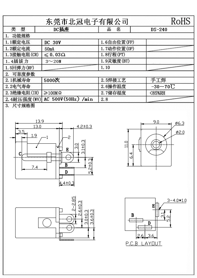3.Lnsulation Resistance: DC500V 1Minute