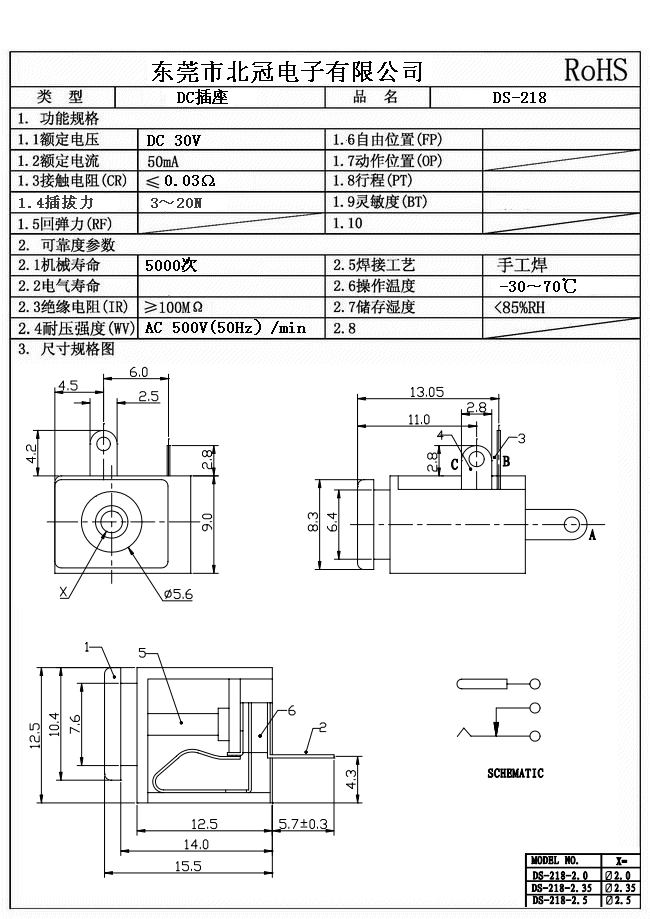 Typical Specifications 1. Rating : DC 30V 0.5A 2. Contact Resistance : 70ΩMax 3.Lnsulation Resistance: DC500V 1Minute 4.Operating Temperature Range: -25℃+80℃ 5.Ambient Humidity Used: ≤85%RH 6. Operating Force : 3-20N 7. Operating Life : 5,000Cycles