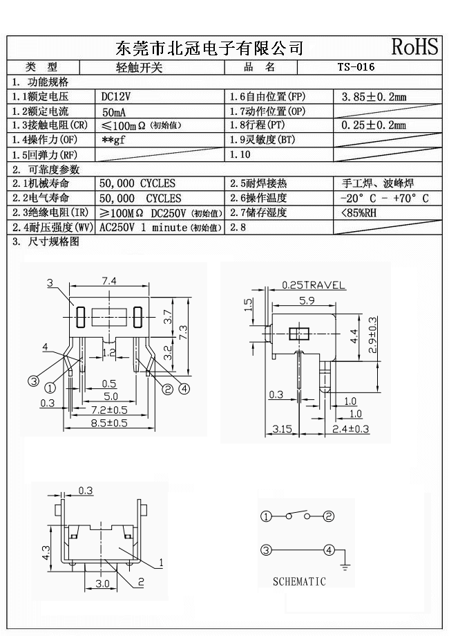 7.Travel:0.25±0.1mm
