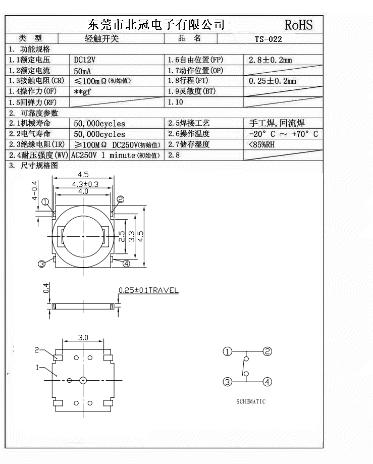 產(chǎn)品名稱:TS-022輕觸開關(guān)
