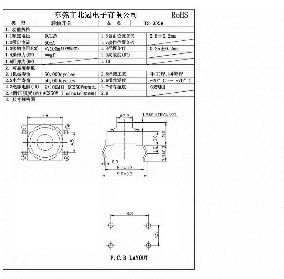 產(chǎn)品名稱:TS-035輕觸開關(guān)