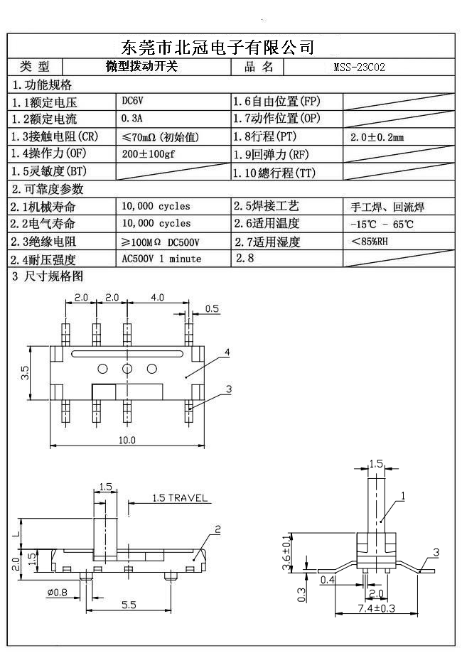 產(chǎn)品名稱:MSS-23C02撥動開關(guān)