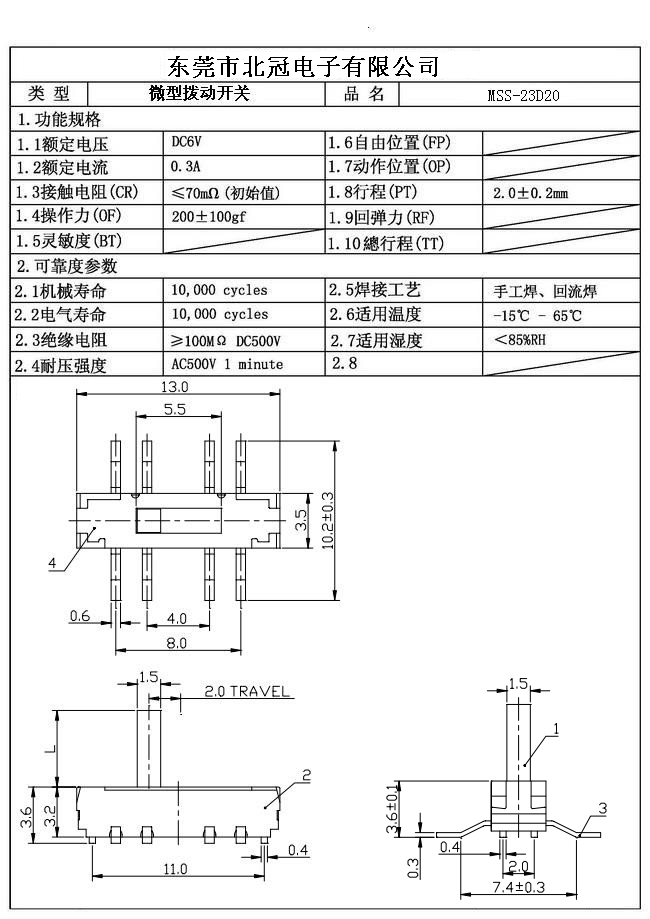 產(chǎn)品名稱:MSS-23D20撥動開關(guān)