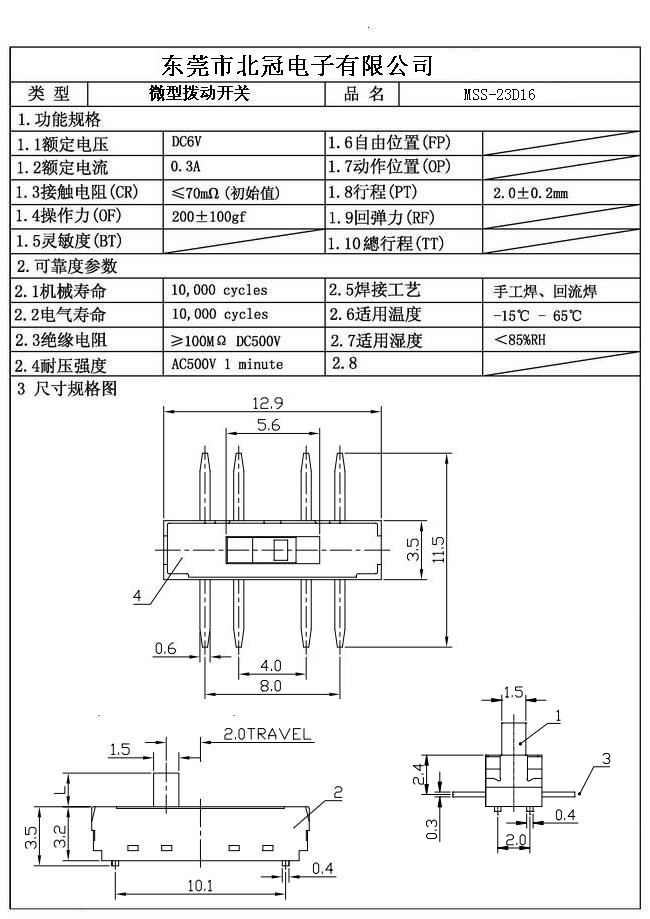 產(chǎn)品名稱:MSS-23D16撥動開關(guān)