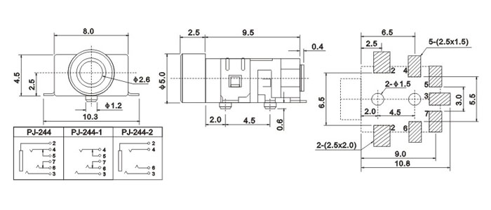 產(chǎn)品名稱:PJ-244 品名:2.5耳機插座 |