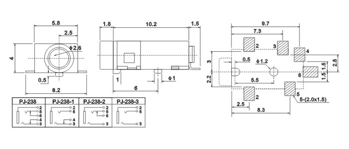 產(chǎn)品名稱:PJ-238 品名:2.5耳機(jī)插座 |