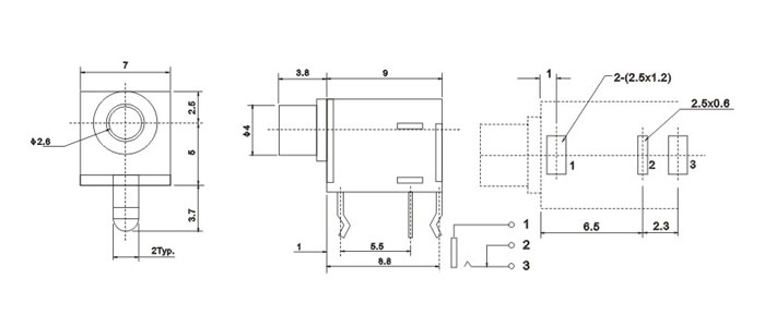 產(chǎn)品名稱:PJ-206 品名:2.5耳機(jī)插座 |