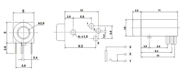 產(chǎn)品名稱:PJ-212 品名:2.5耳機插座 |