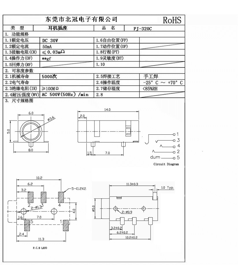 Typical Specifications Rating:0.5A 30V DC Contact Resistance:100 mΩ max. Operating temperature:-20℃~70℃ Operating force:3-20N Operating Life:5,000cycles