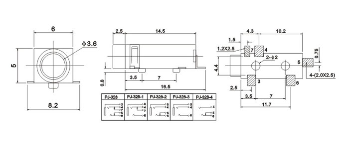產(chǎn)品名稱:PJ-328 品名:3.5耳機(jī)插座 |