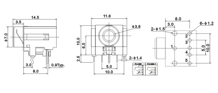 產(chǎn)品名稱:PJ-388 品名:3.5耳機(jī)插座 |