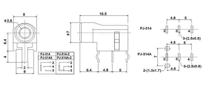 產(chǎn)品名稱:PJ-314A 品名:3.5耳機插座 |