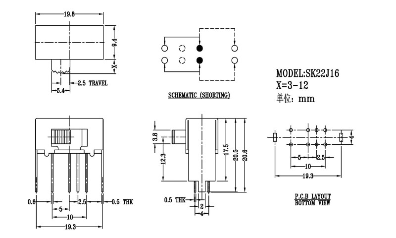 撥動開關(guān)主要技術(shù)參數(shù)/Slide Switch Main data