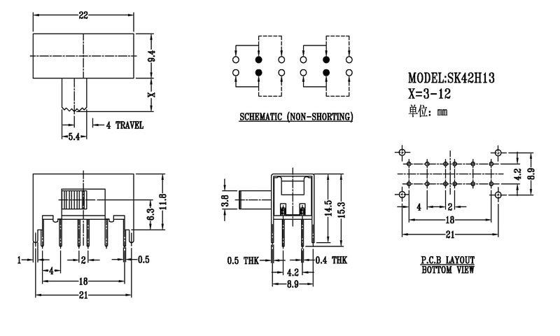 撥動開關主要技術參數(shù)/Slide Switch Main data