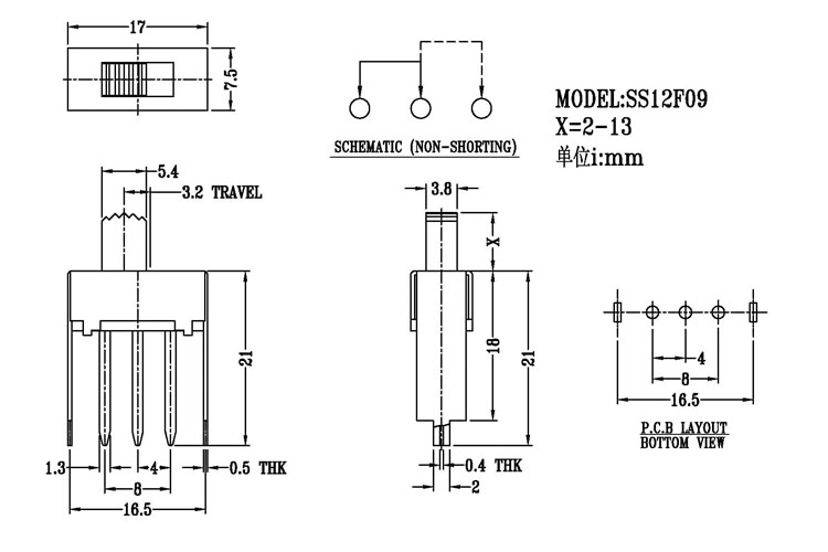 撥動(dòng)開關(guān)主要技術(shù)參數(shù)/Slide Switch Main data