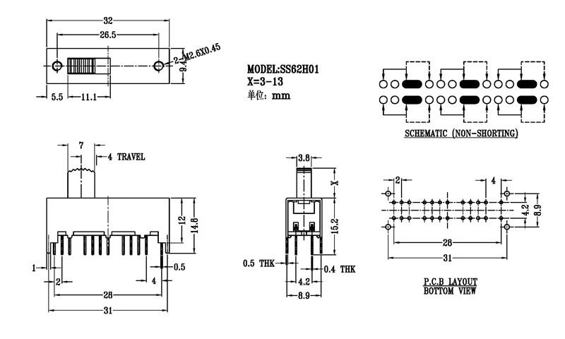 SS-62H01撥動(dòng)開(kāi)關(guān)